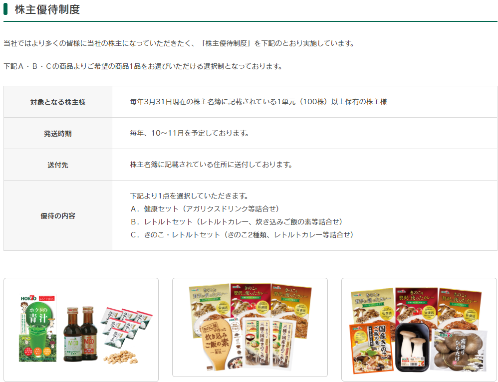 『↓』はホクトの株主優待案内ページです。ぜひ参考にされてください^^