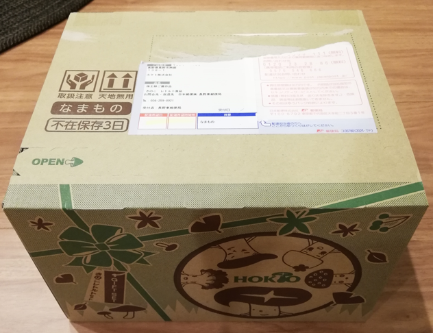それでは、キノコ等自社製品のご紹介です。『↓』は宅急便から荷物が届いた様子です。外装の段ボールで中の商品がしっかりと守られていました☆