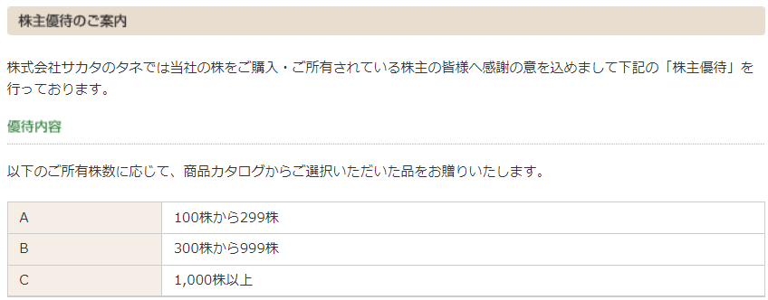 『↓』はサカタのタネの株主優待案内ページです。ぜひ参考にされてください^^