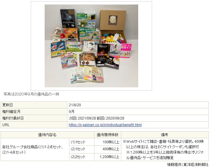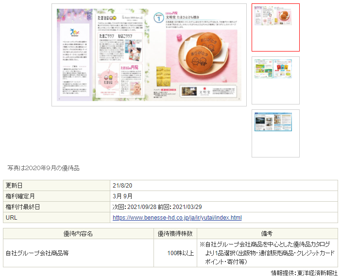 100株保有で2000円相当の自社製品(図鑑等)がもらえます☆彡小学生~中学生のお子様がいる家庭には重宝します!!