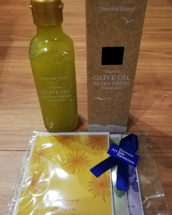 それでは、オリーブオイルとお茶セットのご紹介です。『↓』は宅急便から荷物が届いた様子です。外装の箱で中の商品がしっかりと守られていました☆