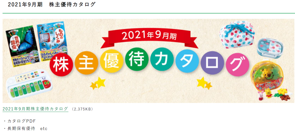 学研の株主優待は9月に100株保有していれば、『2000円相当の自社オンラインショップクーポン券』が貰えます。