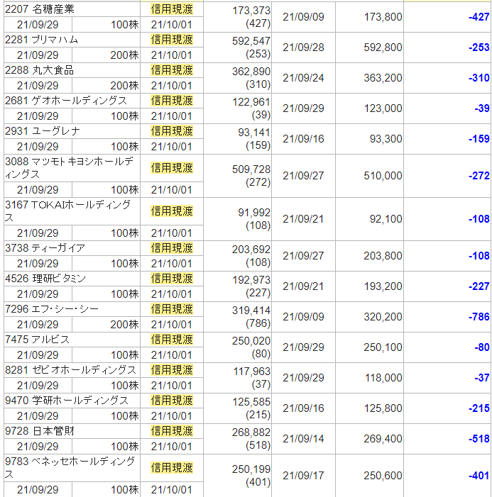 前年度の9月は15銘柄でクロス取引をしていました☆彡
