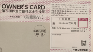2022年10月某日、『イオン(証券コード:8267)』 から株主優待が届きました。