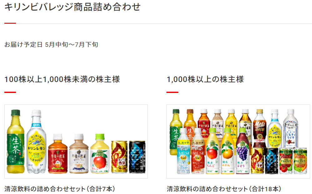 キリンの株主優待は『1000円相当自社製品詰め合わせ』