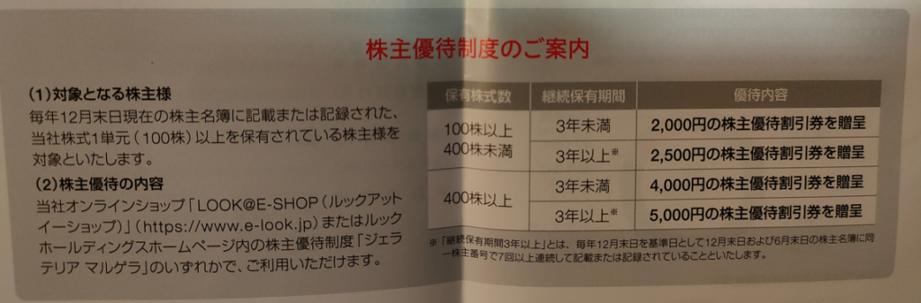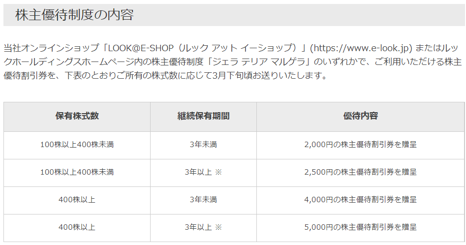 それでは、ルックホールディングスの2000円優待クーポンのご紹介です。