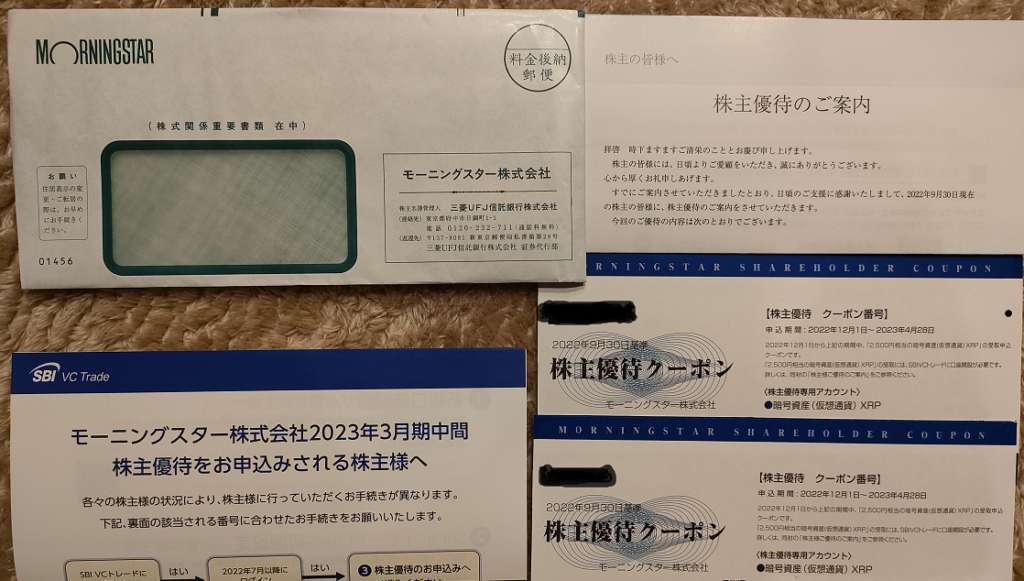2022年12月某日、『モーニングスター(証券コード:4765)』 から株主優待が届きました。