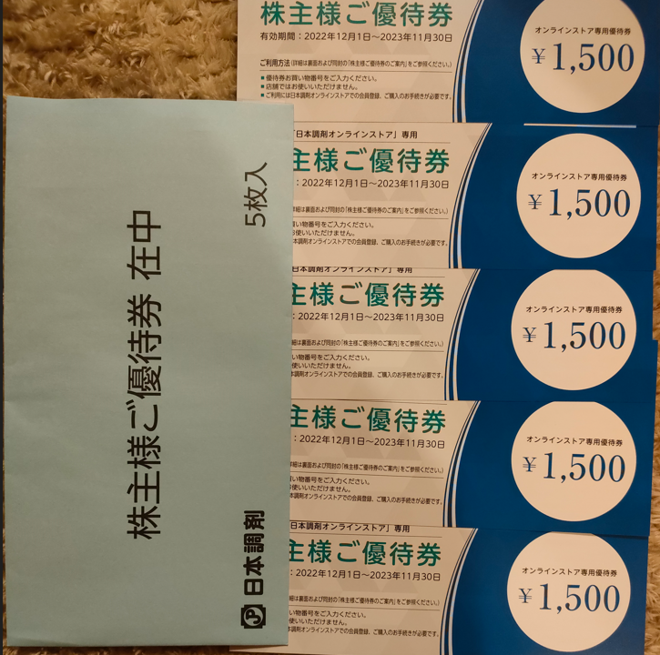 日本調剤/株主優待/2022年 7500円クーポン券と商品が到着。クロス取引するなら500株がマスト。