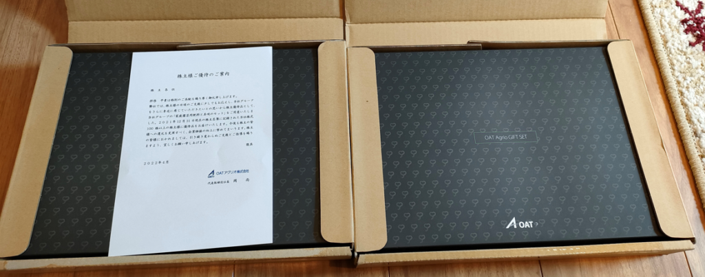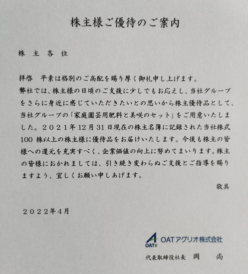 2022年5月某日、『OATアグリオ(証券コード:4079)』 から株主優待が届きました。