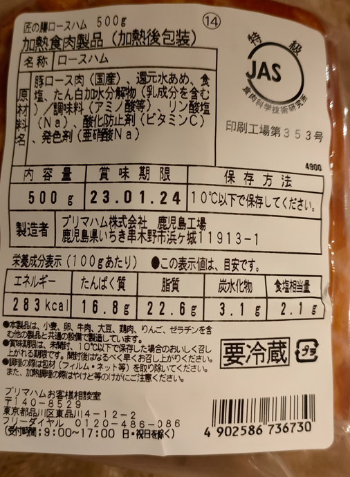 それでは、プリマハムの匠の膳ロースハムのご紹介です。