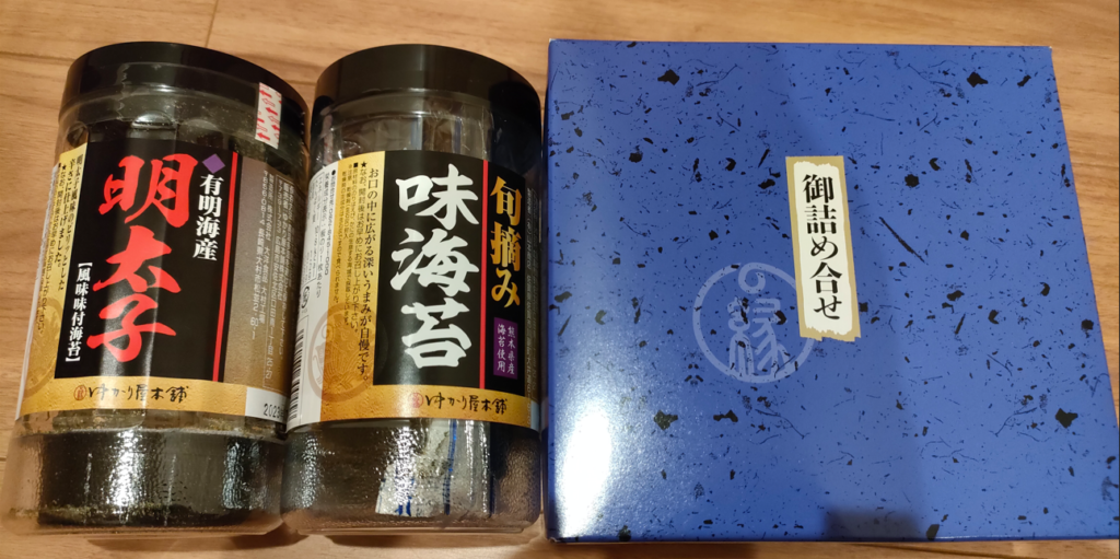 箱を開けてみました。明太子海苔と味海苔のセットです。