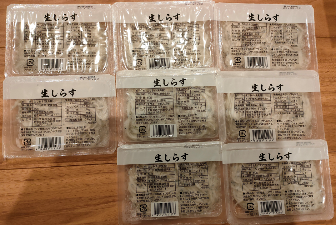 ウェブカタログで選択した『生しらす8パック』が到着