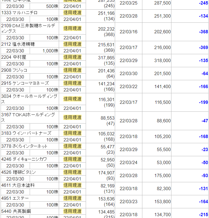 前年度の3月は32銘柄でクロス取引をしていました☆彡