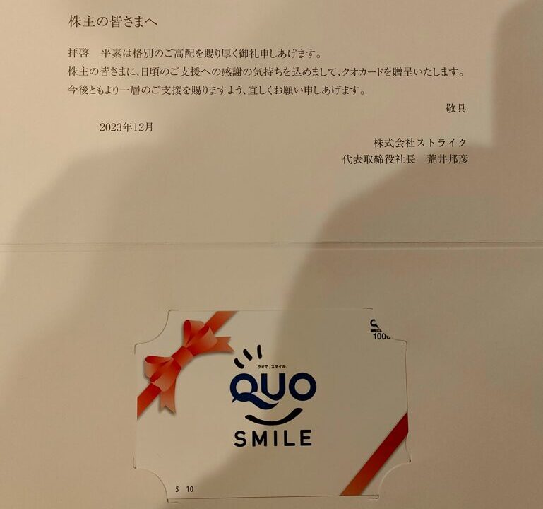 ストライクの株主優待は『1000円クオカード』