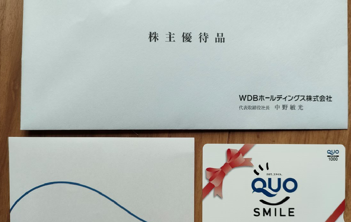 『WDBホールディングス』の株主優待は、3月に100株保有していれば、『1000円クオカード』が貰えます。優待品を得るための長期株保有条件もないのでおすすめです。