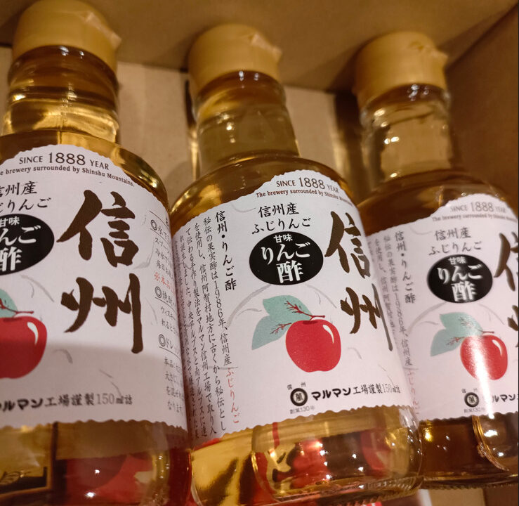 なんと、優待カタログで選択した『信州産ふじりんご酢5本セット』。