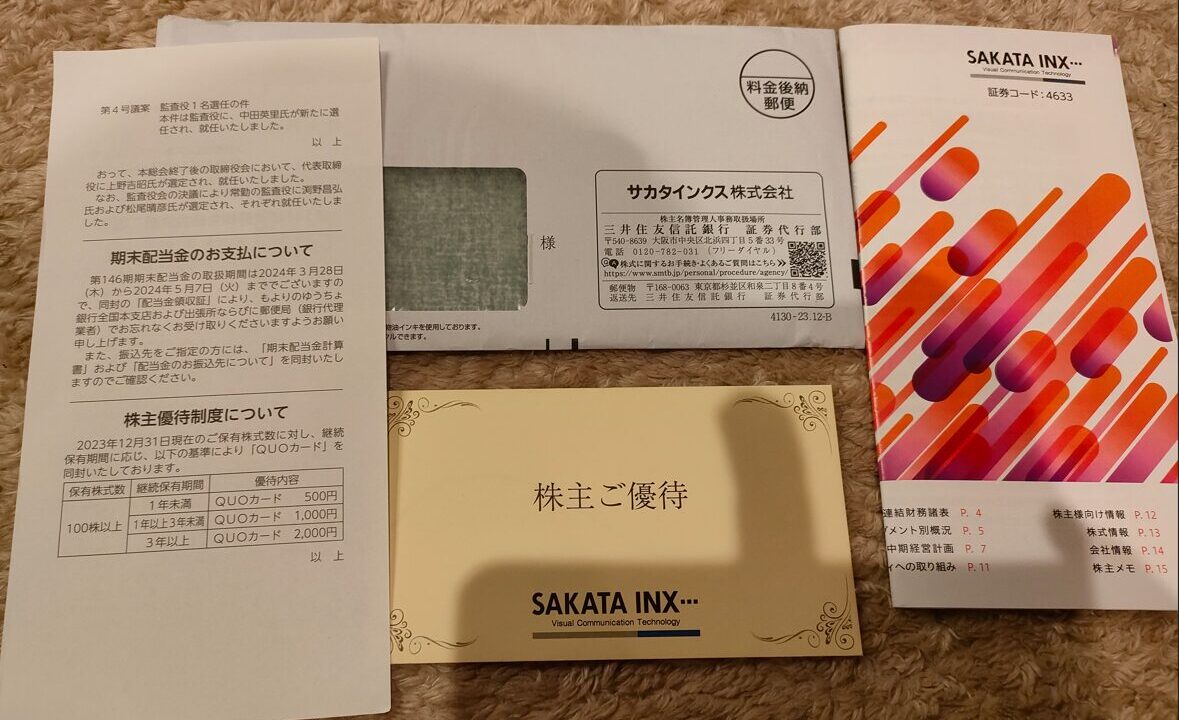 2024年4月某日、『サカタインクス』 から株主優待が届きました。