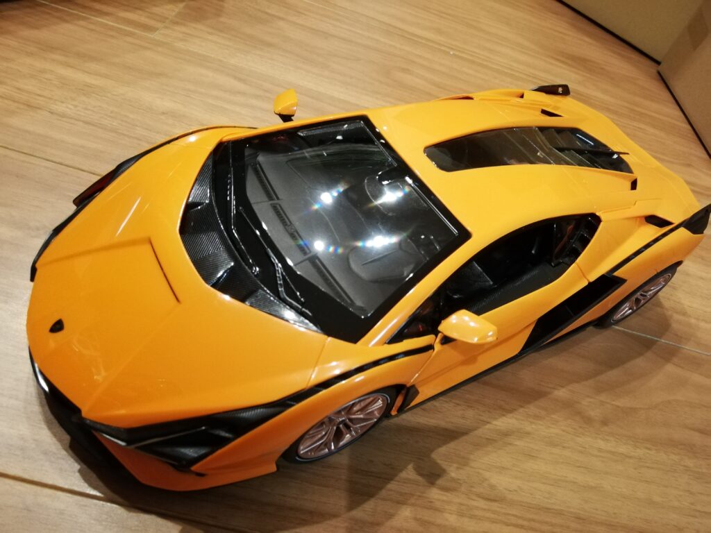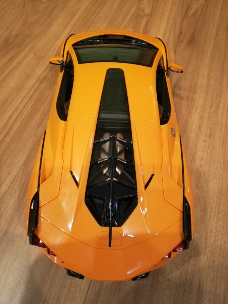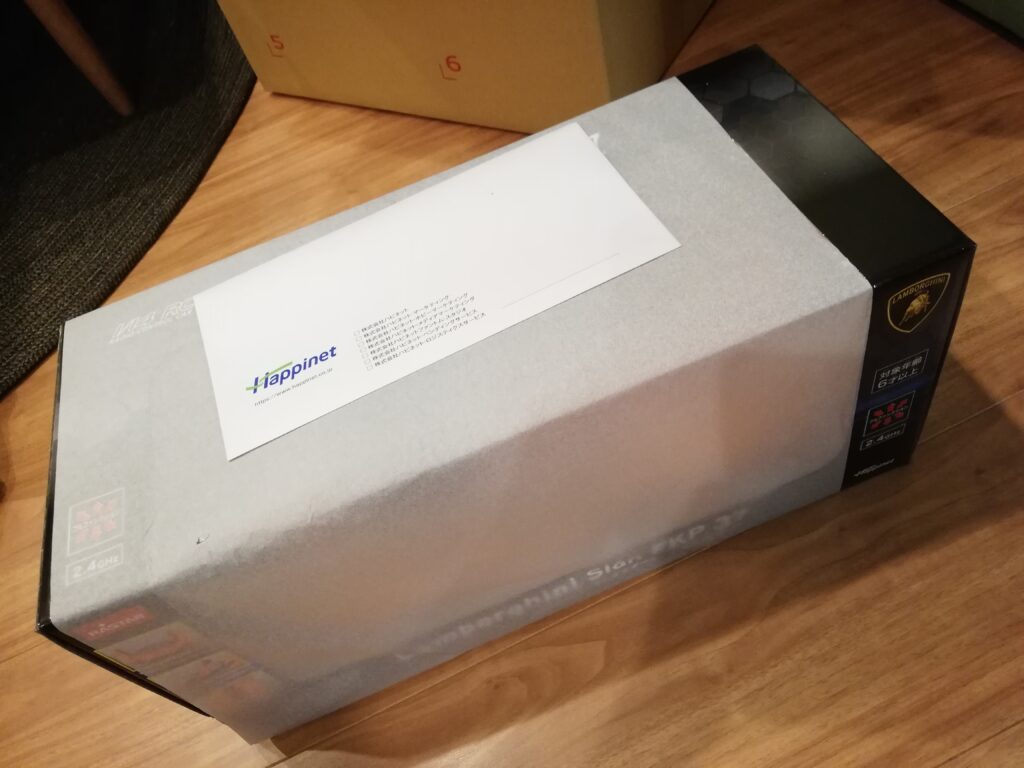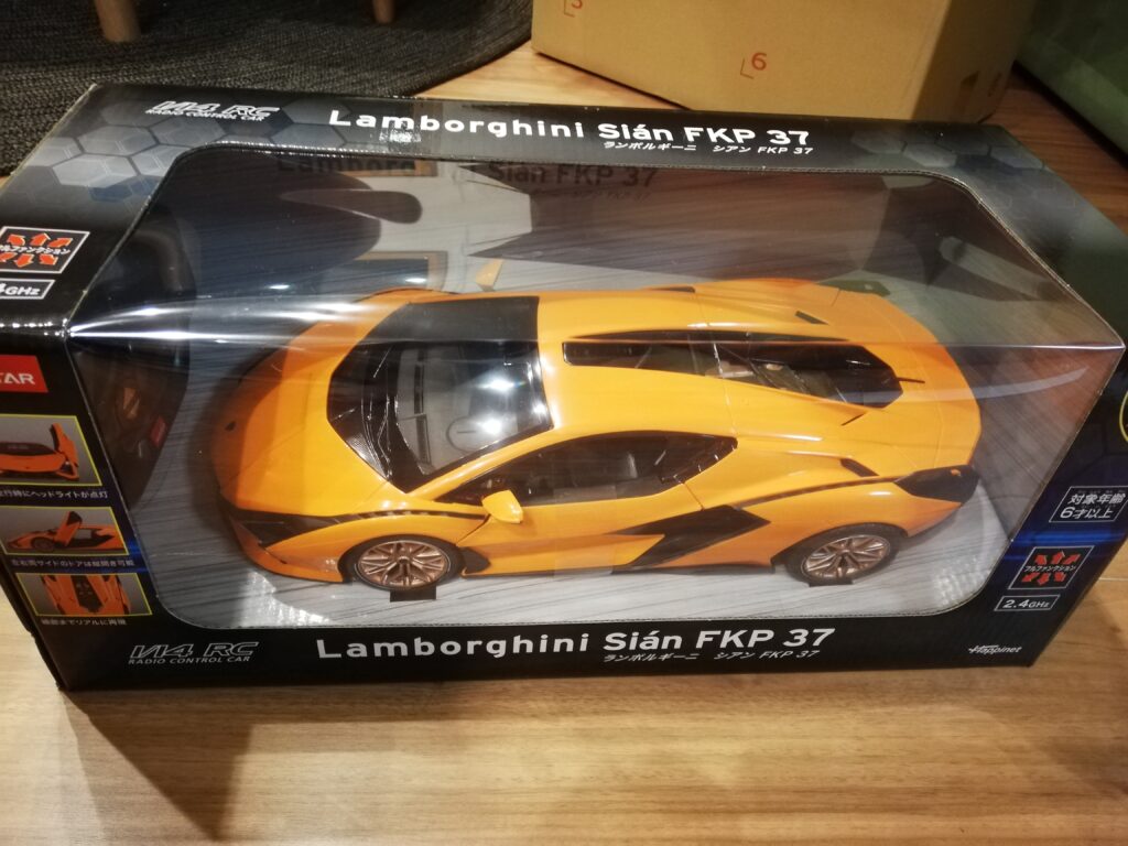 段ボールを開封すると、オレンジのランボルギーニが入っていました。