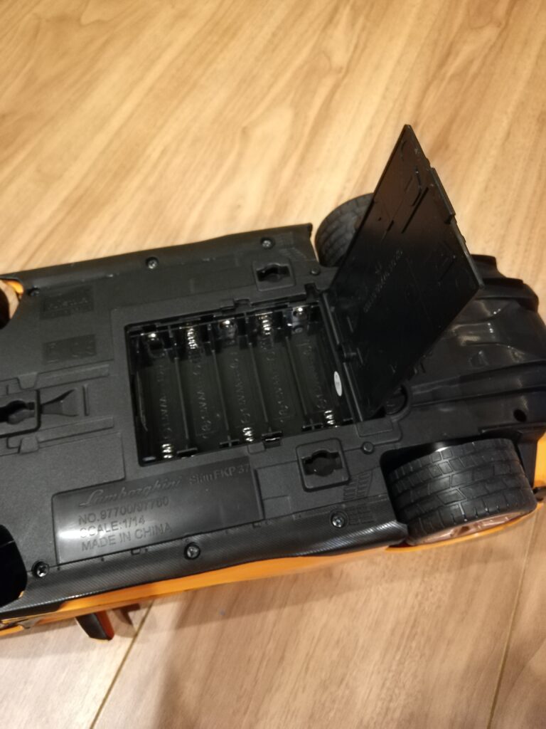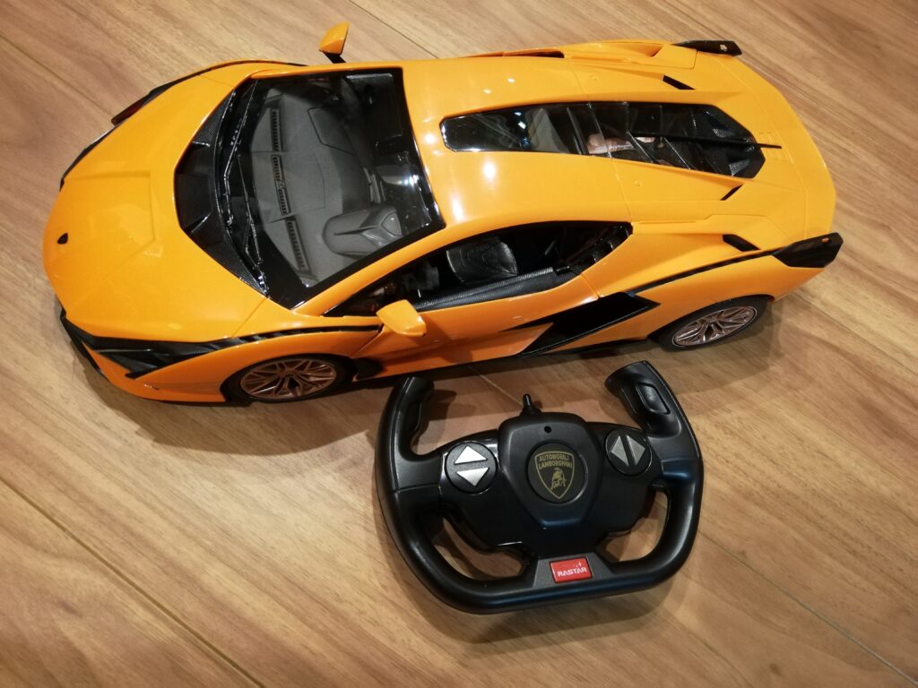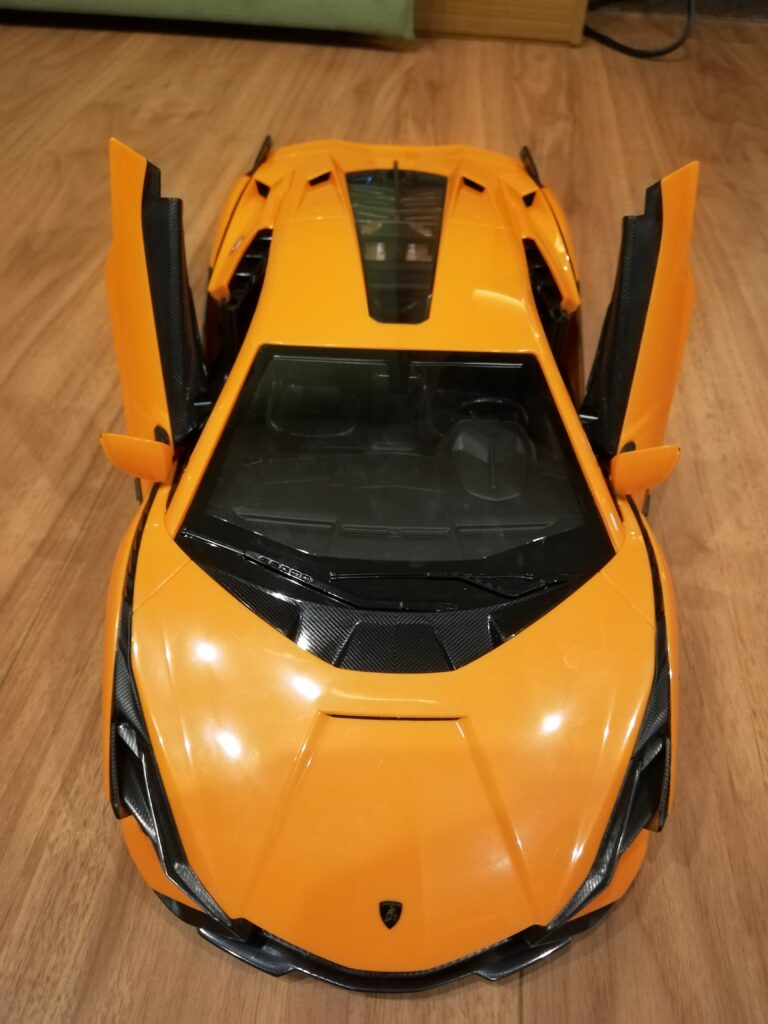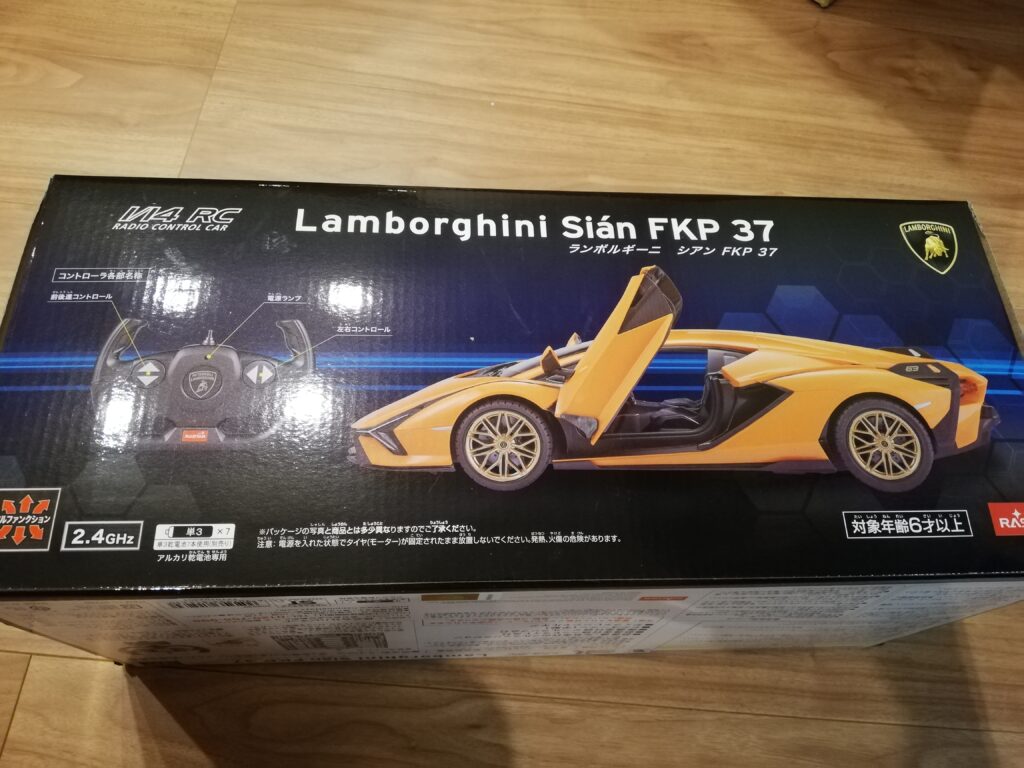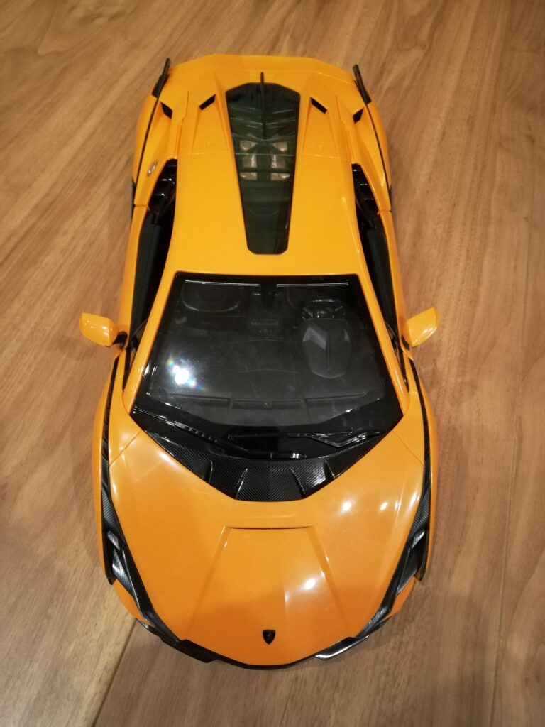 段ボールを開封すると、オレンジのランボルギーニが入っていました。