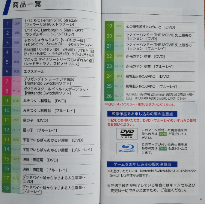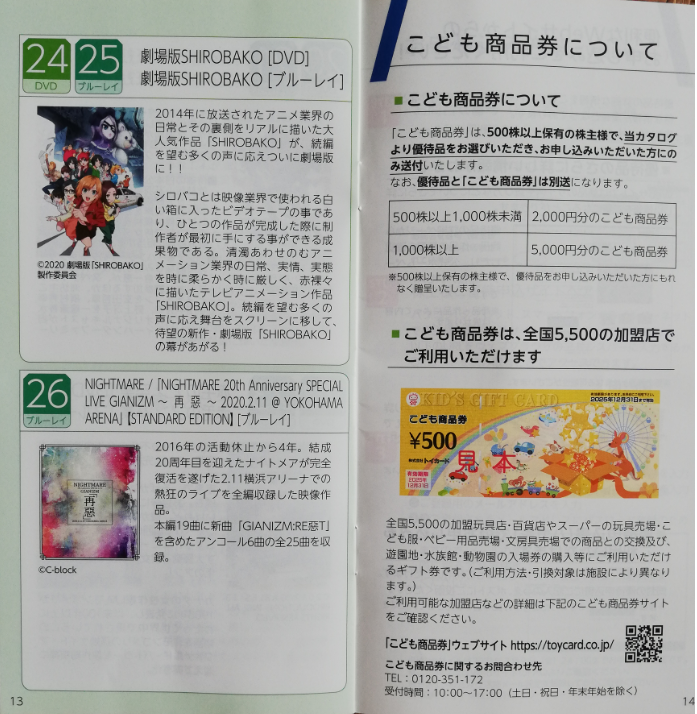 株主優待品 : オリジナル玩具・ゲーム・DVD・ブルーレイ等 カタログ