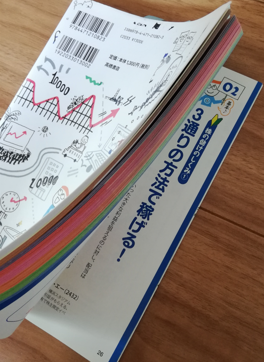 この1冊で、専門用語、株の売買のタイミング、リスク分散の方法の基礎が学べるので初心者にはお勧めの1冊です。私も何度も読み返して忘れがちな箇所には付箋をたくさんつけています。