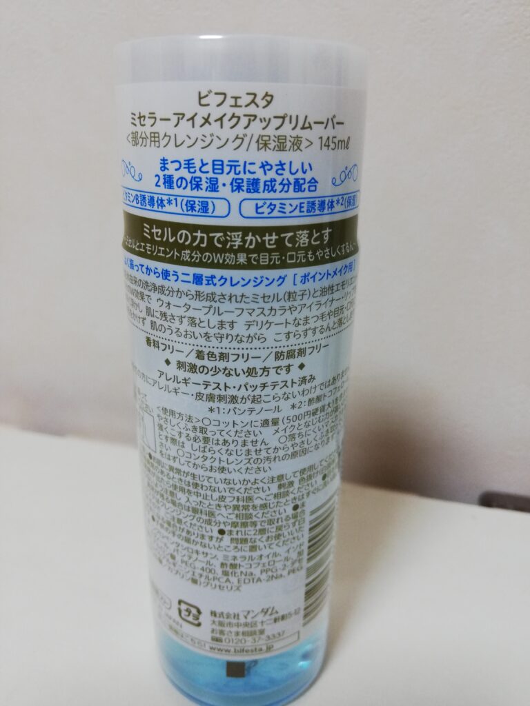 Bifesta(ビフェスタ)は、部分用クレンジング/保湿液です。女性用のポイントメイク落としですね^^。メイク落とししながら保湿ができるという優れものです☆彡ウォータープルーフマスカラやアイライナー、リップ、口紅を素早く浮かし肌に残さず落とせます。香料フリー、着色剤フリー、防腐剤フリーで肌に優しいクレンジングです(^^♪