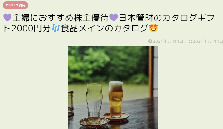 2021年6月、仕事から家に帰ってみると㈱日本管財から、株主優待『2000円相当カタログギフト』が届いていました^^カタログギフトの詳細は『ココ』を参照くださいね。カタログギフトの雰囲気は『↓』な感じです。