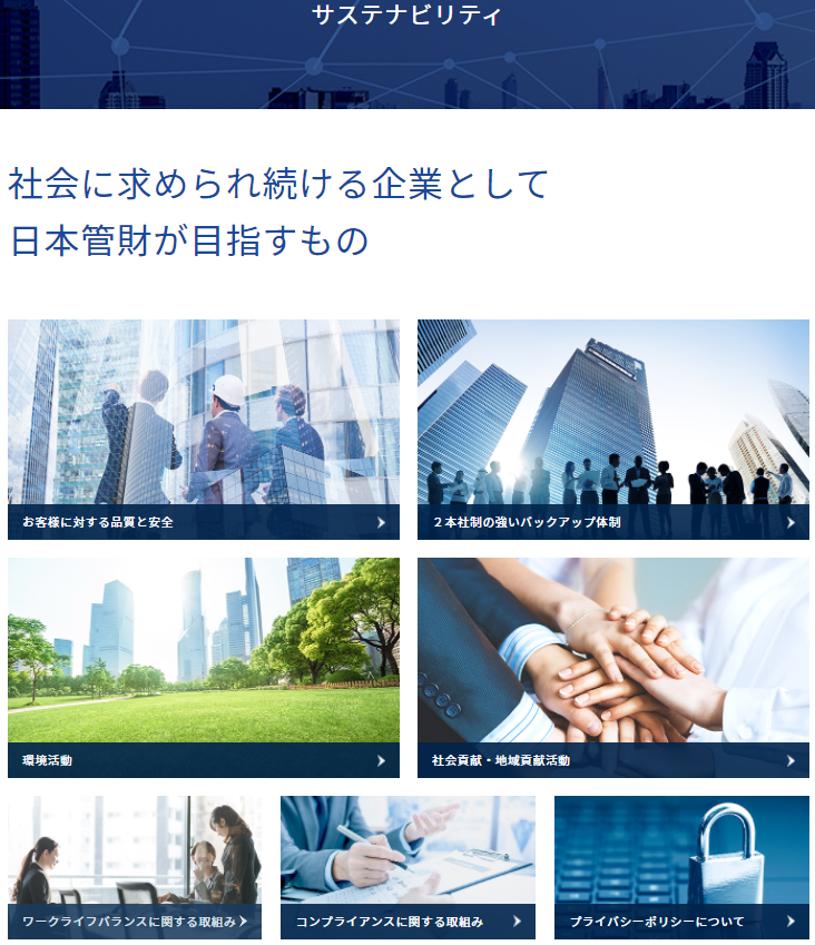 ㈱日本管財の企業ビジョン・サステナビリティー活動をご紹介します。