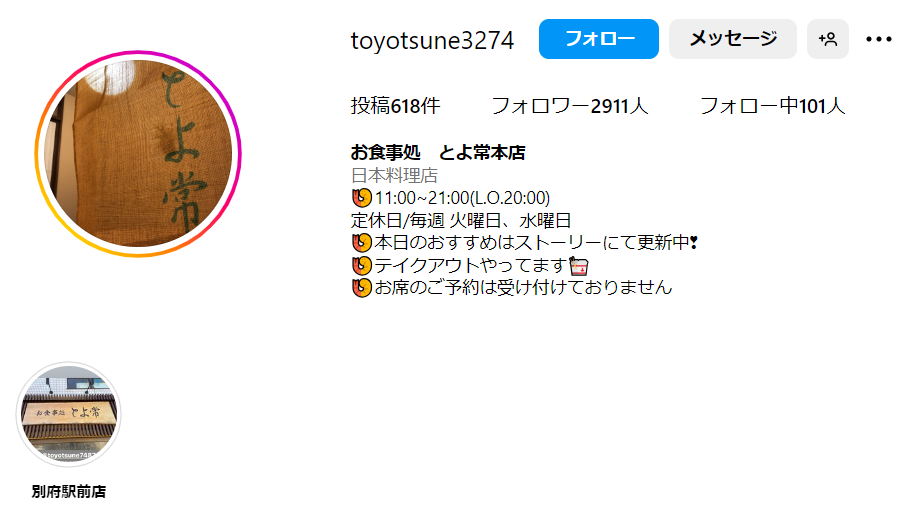 ↓は人気の海鮮料理店(とよ常)のインスタです。