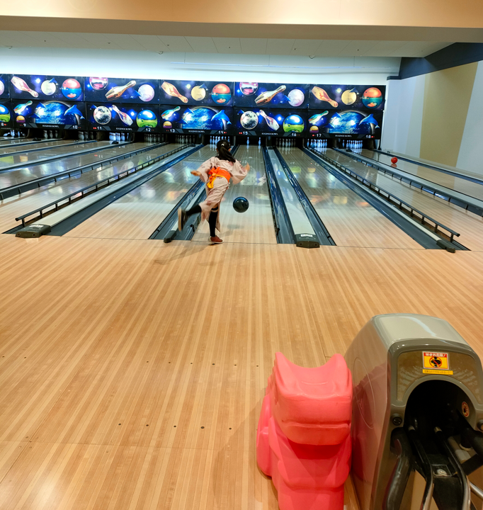 小学生の娘も初ボウリング。意外とさまになっていますw
