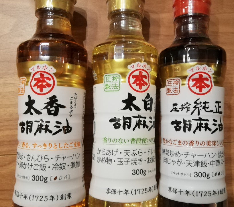 『太白胡麻油』以外にも、『太香胡麻油』と『圧搾純正胡麻油』もそれぞれ1本入っていました^^