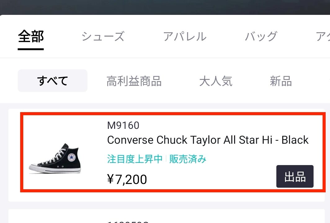 今回は、POIZONせどりの流れを把握するための仕入れ&販売ですので、価格についてはあまり気にせず、数千円の靴を選びましょう。