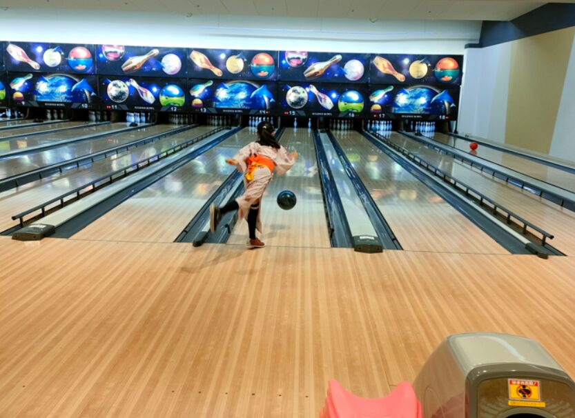 小学生の娘も初ボウリング。意外とさまになっていますw
