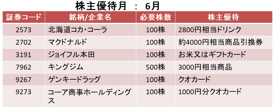 ・株主優待権利獲得に係る株長期保有条件が付記されていないこと。