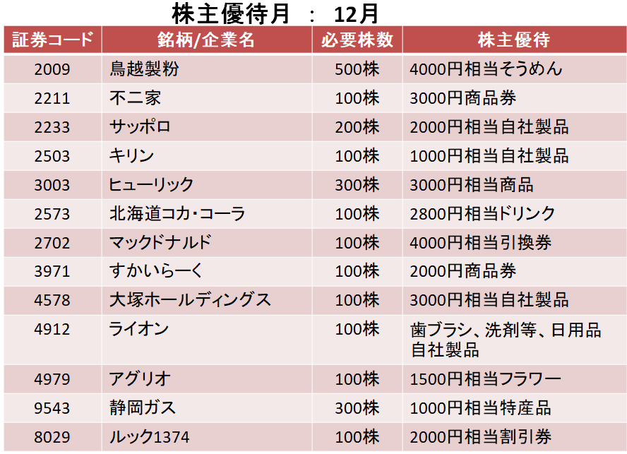 年末。3月、9月に続き、12月は株主優待が盛んな時期になります。