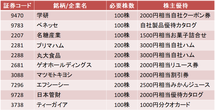 いかがだったでしょうか。ここまで、月別優待品をご紹介してきました。