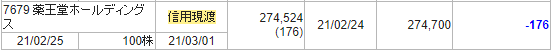 薬王堂の株主優待は2月に100株保有していれば、株主優待ゲットの権利を入手できます。ちなみに、クロス取引の手数料は170円程度です^^170円でお米(新米)3kgですので、超お得です^^↓は実際に私のクロス取引に要した手数料です。176円かかっています(^^♪