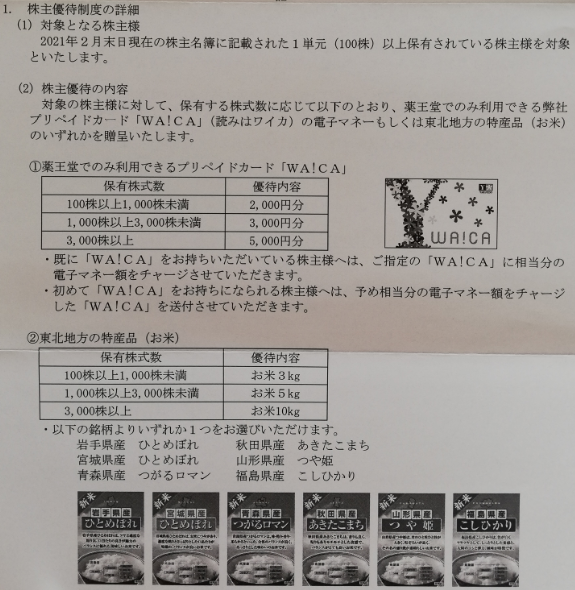 2021年6月3日㈱薬王堂ホールディングスから「株主優待制度」の案内が届きました☆彡
