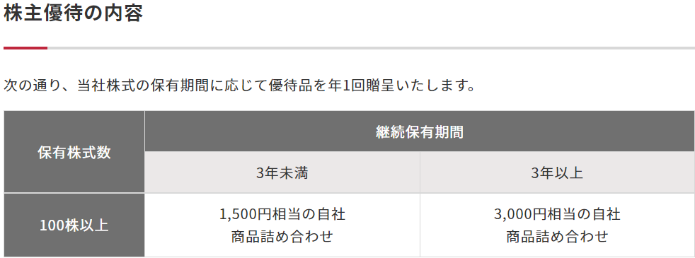3年以上で1500円分の株主優待が、3000円分にアップするので長期保有が断然お得^^