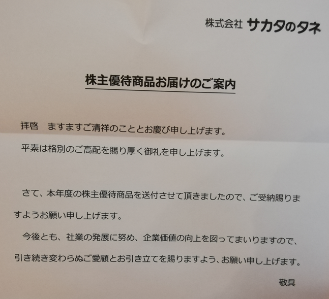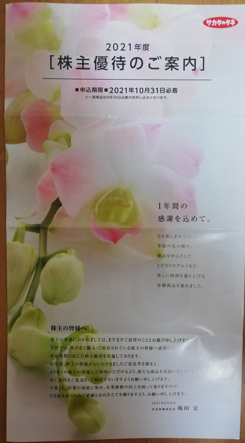 2021年8月にサカタのタネから優待カタログが到着しました。