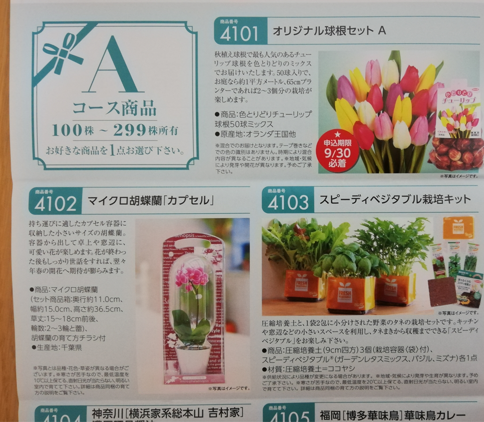 サカタのタネの株主優待は『植物系・食品系優待カタログ』