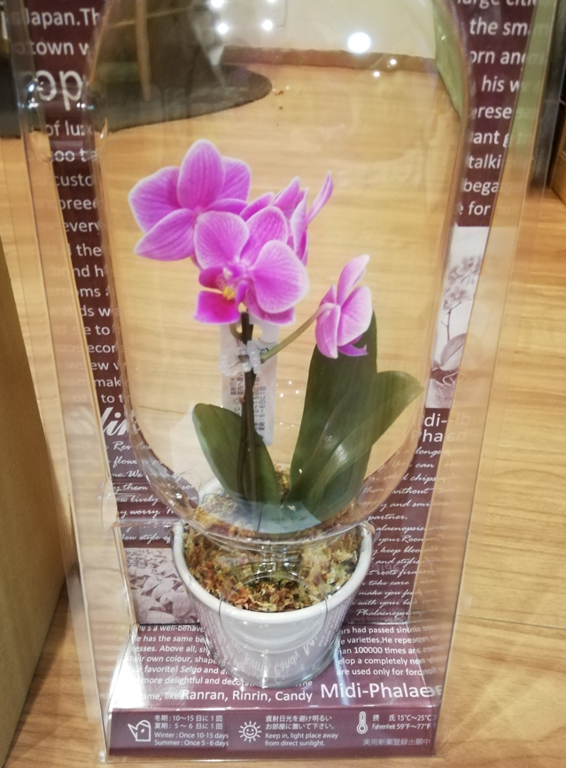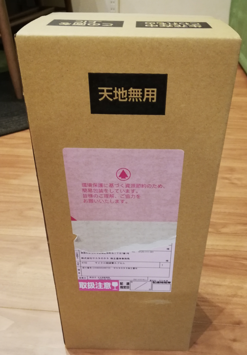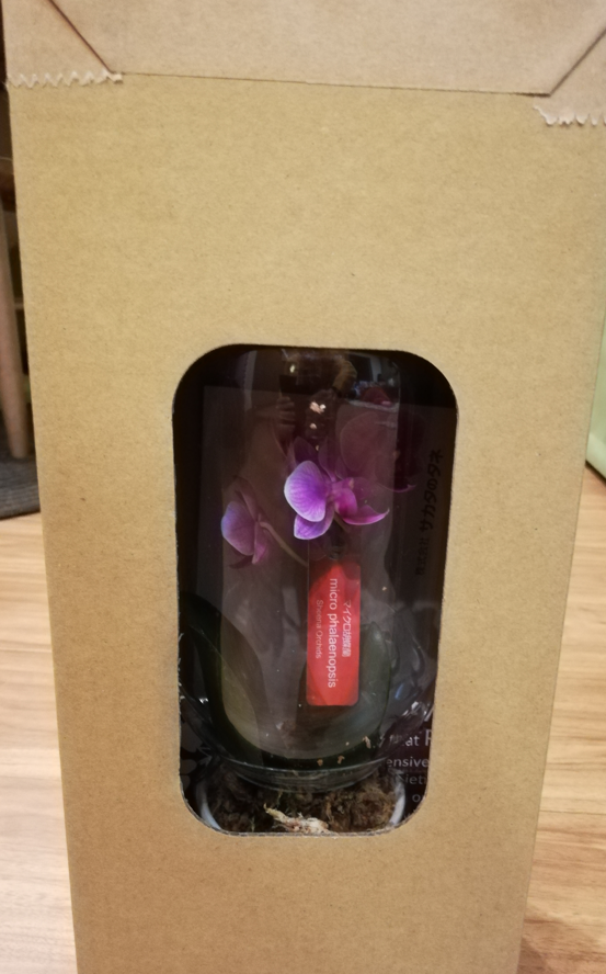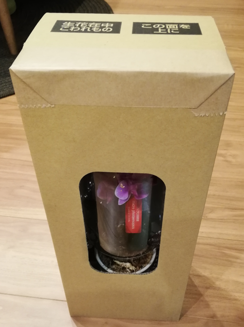 それでは、マイクロ胡蝶蘭のご紹介です。『↓』は宅急便から荷物が届いた様子です。外装の包装で中の商品がしっかりと守られていました