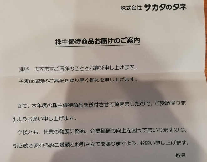 2021年8月にサカタのタネから優待カタログが到着しました。