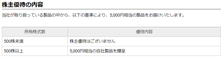 トランザクションの株主優待は2月と8月に100株保有していれば『5000円相当自社製品』がそれぞれの月で貰えます。