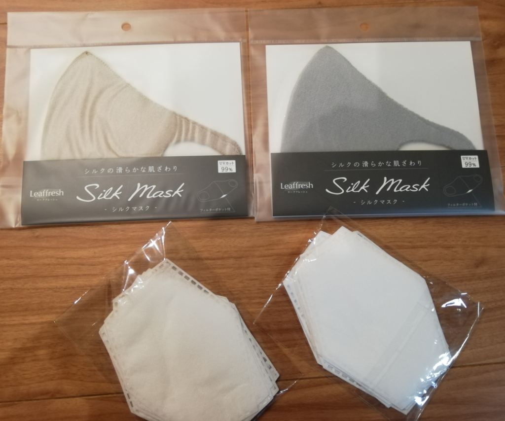 箱の中には、2種類のシルクマスクとフィルター30枚が入っていました。