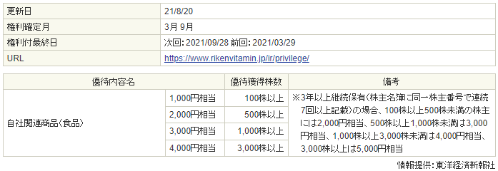 ③理研ビタミン(4526) 1000円相当食品