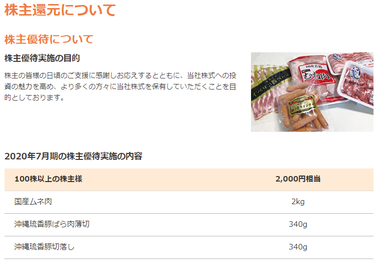 JMホールディングスの株主優待は7月に100株保有していれば2000円相当の『自社製品お肉セット』がもらえます。
