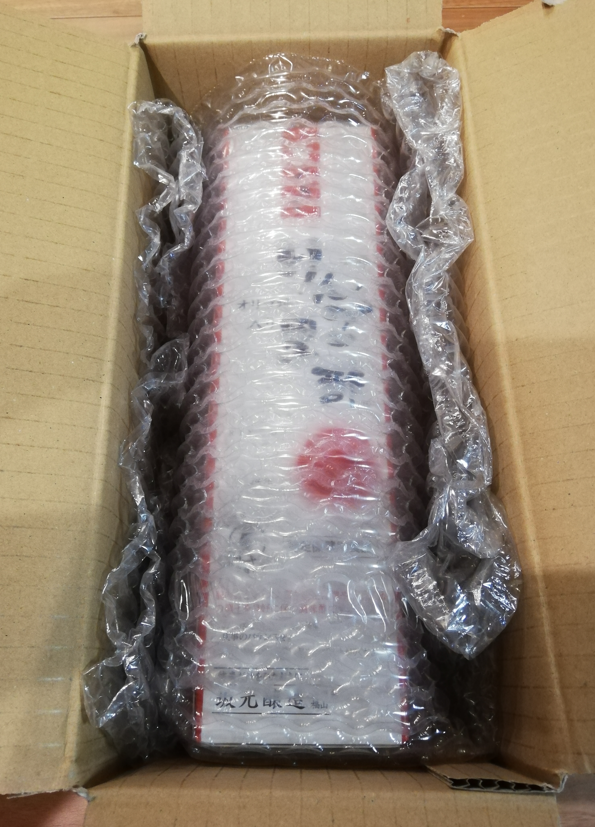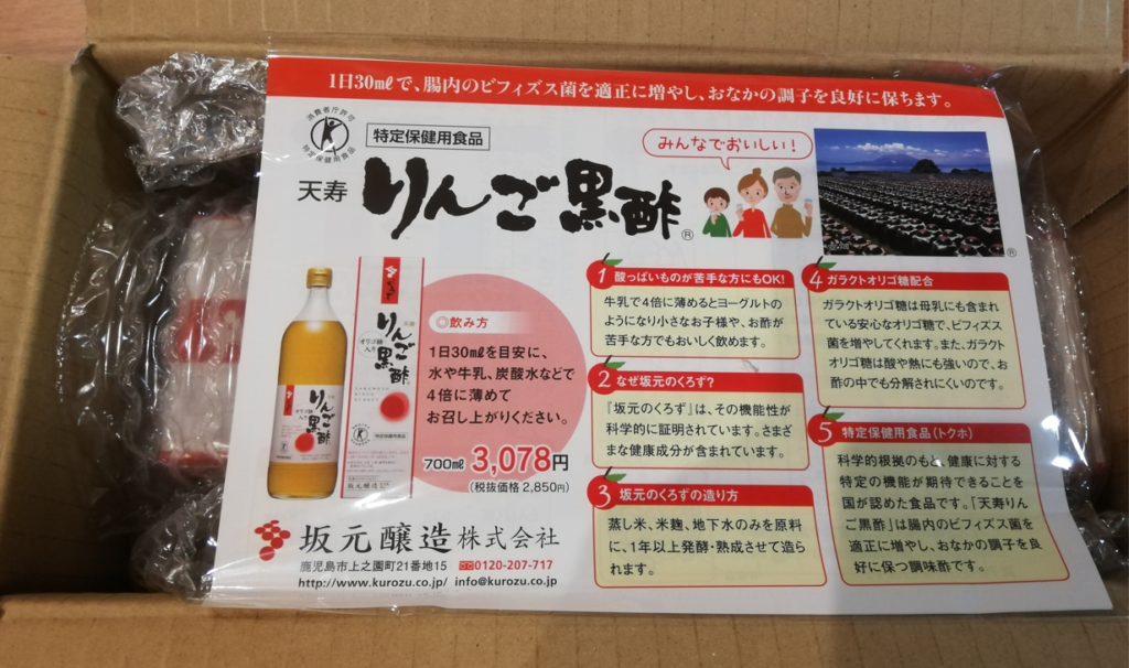 段ボールの中には黒酢の化粧箱が。プチプチで厳重に守られています^^