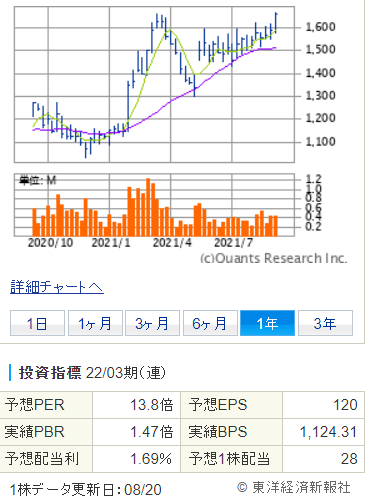 クオールの配当金は現在2%(1株28円程度)、PERは14倍、PBRは1倍、ROEは8%です。なんといっても、PBRは1倍台、ROEが8%ということで、利益率が良い割に、株価の観点からは割安感のある銘柄といえるでしょう(^^♪