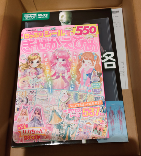早速開封。人体模型は約1600円で、2000円で送料無料となるので、550円の着せ替えシールも一緒に購入しました。合計約2150円。2000円の株主優待クーポンを使用して、実際の手出しは約150円です。